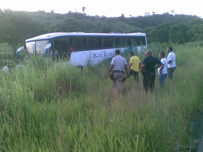 Nesta quinta-feira (07), um dos ônibus que transporta os universitários do município de Ubaitaba teve um problema hidráulico e saiu da pista, quase provocando um grave acidente na BR 101, por volta das 18h, próximo a cidade de Ubaitaba.