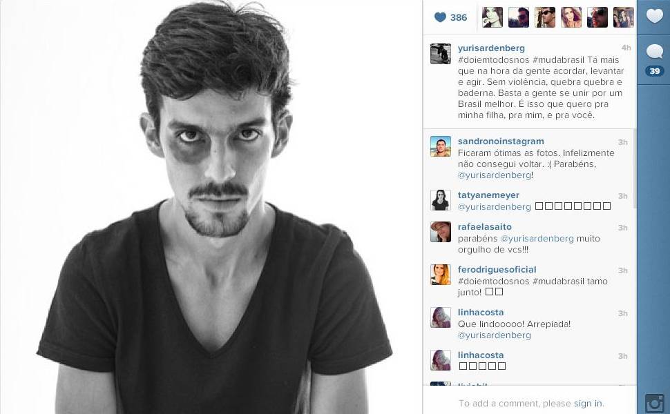 Participaram da ação, chamada de "dói em todos nós" e idealizada pelo fotógrafo Yuri Sardenberg, Carmo Dalla Vecchia, Fernanda Rodrigues, Paulo Vilhena, entre outros. As fotos foram publicadas nos seus respectivos perfis na rede social Instagram.